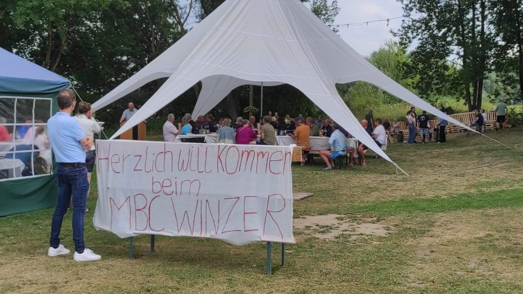 We zijn met twee auto’s en de kleine trailer naar de tocht gereden. Ingolstadt is best een eind en we wilden relaxed aankomen. We mochten, doordat wij lid waren van de DKV en de TKBN bij de Kanu Club Limburg in Limburg an der Lahn overnachten en hun faciliteiten gebruiken. Mooi dat er in het kano wereldje zo’n vertrouwen, is dat we gewoon de sleutel codes kregen! Moeten we koesteren! Na een gezellige avond en goede nachtrust gingen we naar Ingolstadt. Daar werden we welkom geheten door de Duitse tour leiding, kregen onze sticker en een vaantje en konden t-shirts met TID logo en route kopen. Hier lekker gegeten, met bier natuurlijk.